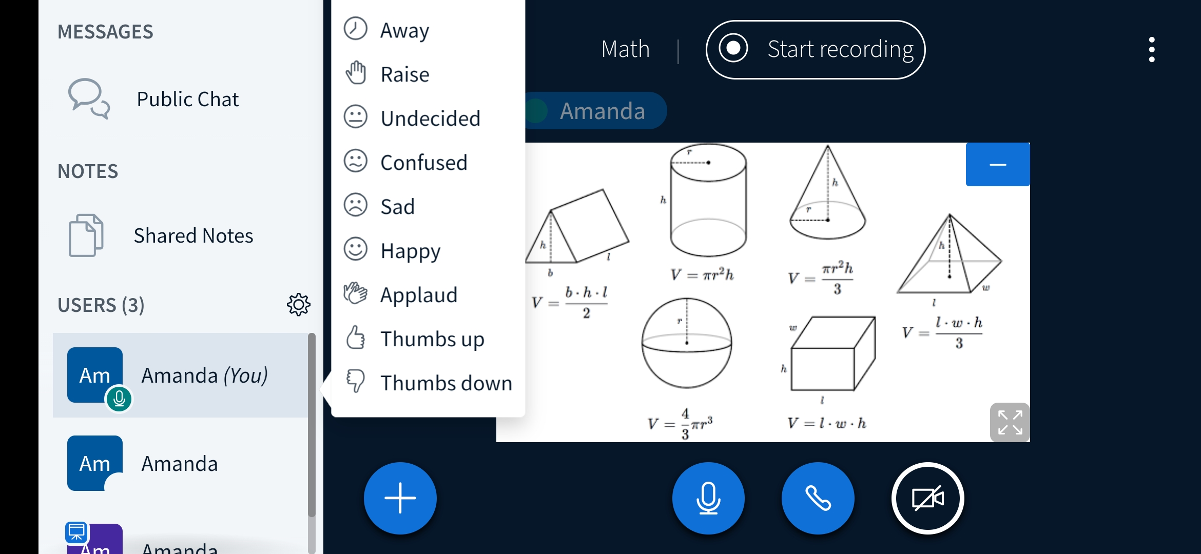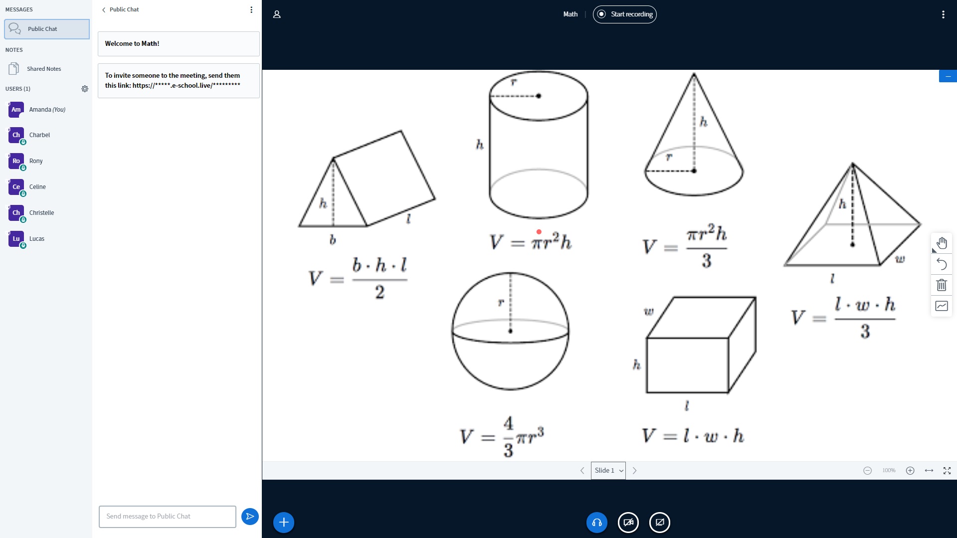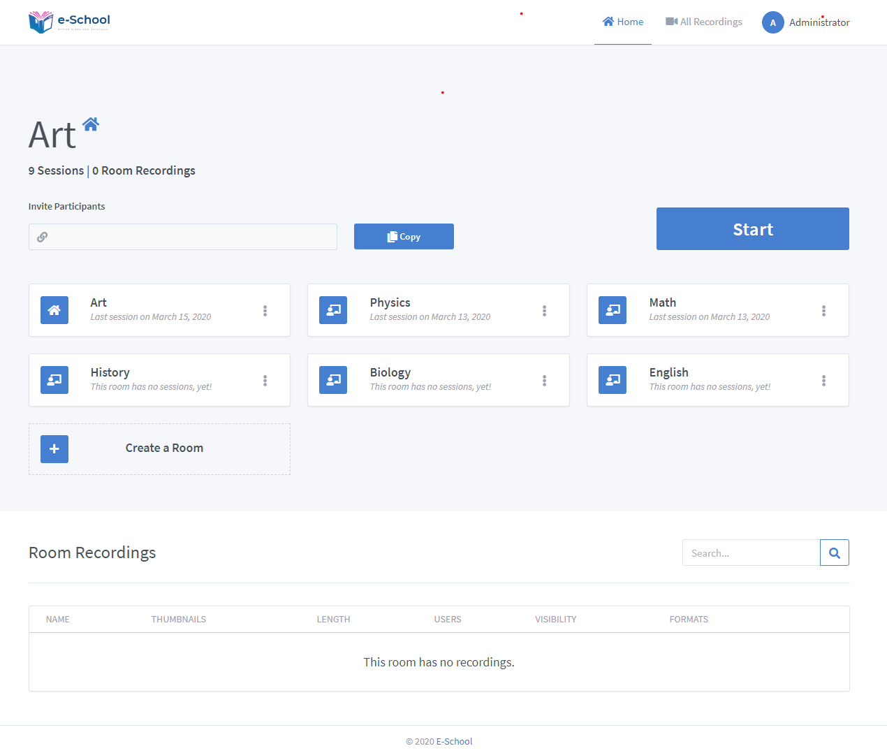 Each Instructor have access to his private dashboard where he can create classes and set the default parameters of that class. He can also invite his students to join his lectures. From the dashboard instructors can also manage recordings like setting them to Public or Private.